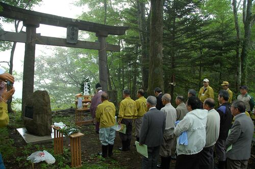 三斗小屋宿跡の白湯山行人道入口の大鳥居が北那須ライオンズクラブにより修復されたことは新聞報道で知っていた。今回はくせきさんのお誘いでその竣工式に参加することになった。 先日の那須嶽登山でさんざこの日の天気を祈願してきたつもりだったのだが、前…